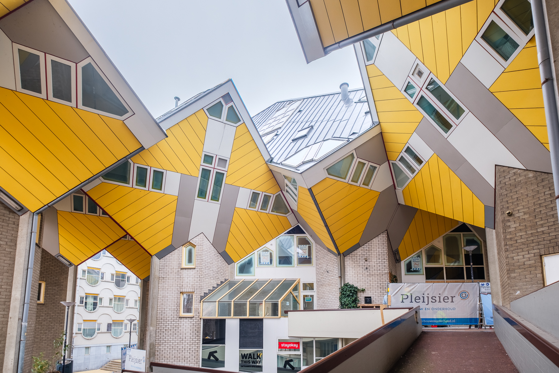 Wie over de Blaak in Rotterdam loopt, ziet ze meteen: de wereldberoemde kubuswoningen van architect Piet Blom. In een deel daarvan runt Stayokay een hostel dat momenteel grondig wordt gerenoveerd door Pleijsier Hotelrenovatie. “De kubussen zijn uniek in vorm en karakter — en dat vraagt om een partner die begrijpt dat standaardoplossingen hier niet werken,” zegt directeur Joris van Nistelrooij van de Stichting NJHC beheer, eigenaar van het pand.